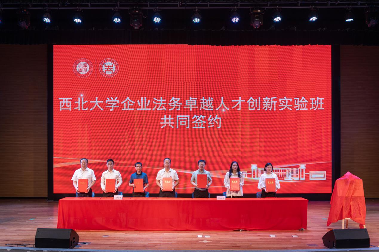 大会举行了集中签约仪式。242net必赢官方院长王思锋代表学院与永嘉信周启邦(西咸)联营律师事务所党委副书记、高级合伙人吉泽伟,中国电建集团西北勘测设计研究院有限公司总法律顾问、纪委副书记魏军,中国建筑西北设计研究院有限公司法律事务部总经理孙倩铷,陕西航天建设集团有限公司纪委书记、总法律顾问蔡志保,陕西路桥集团有限公司审计合规部经理范江维,西安国际医学投资股份有限公司法务部党文文,就242net必赢太阳能企业法务卓越人才创新实验班进行了共同签约。