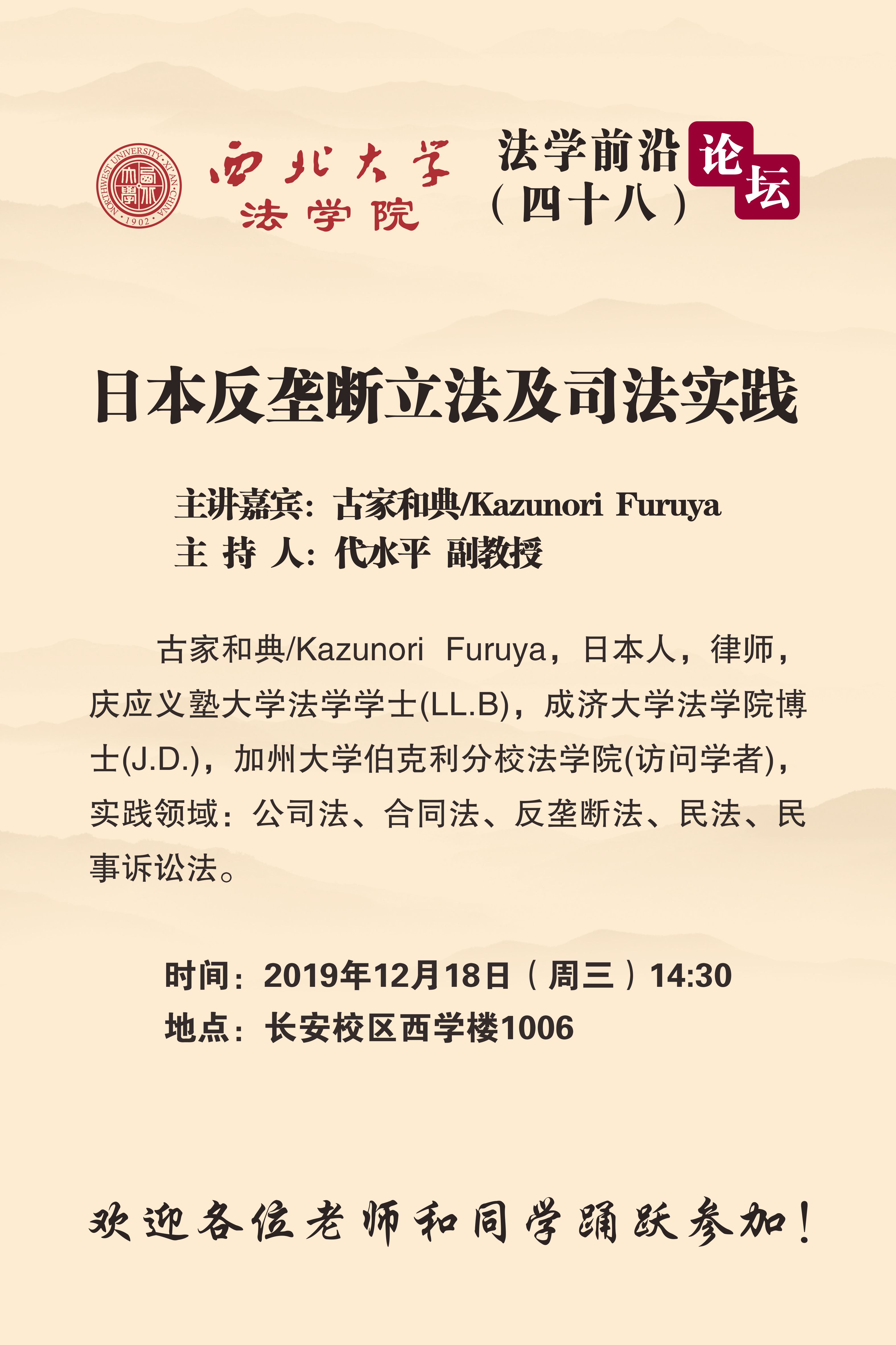 讲座通知|古家和典:日本反垄断立法及司法实践