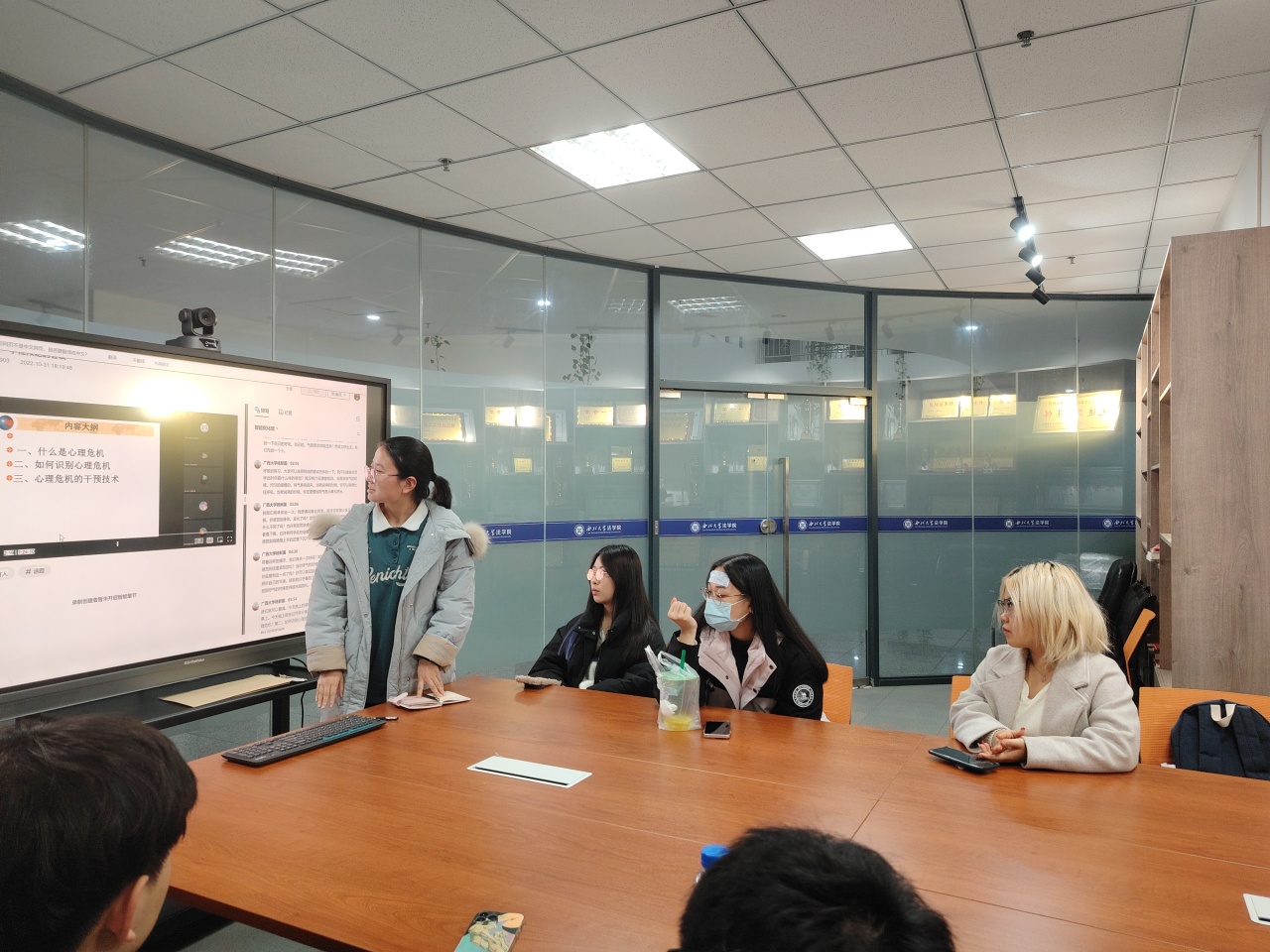 在各心理委员学习学校心理委员培训讲座的基础上,心协负责人庞佳于2023年12月11日晚在西学楼九楼玻璃房内组织大家观看了心理培训视频《心理危机的识别与应对》,并引导大家根据培训视频发表观后感: